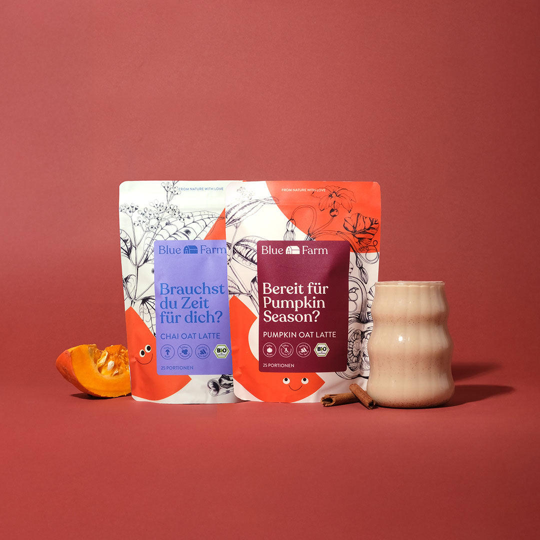 Der Pumpkin Oat Latte enthält echtes Bio-Hokkaido-Kürbispulver und bekommt durch Zimt, Orange und Tonkabohne seinen typischen herbstlichen Touch. Der Chai Oat Latte ist würzig-spicy und mit dem Vitalpilz Reishi angereichert, der für innere Ruhe sorgen kann. Während der Pumpkin Oat Latte sich perfekt für eine süße Auszeit zwischendurch eignet, lädt der Chai Oat Latte dazu ein, nach einem stressigen Tag ein entspannendes Ritual zu genießen.